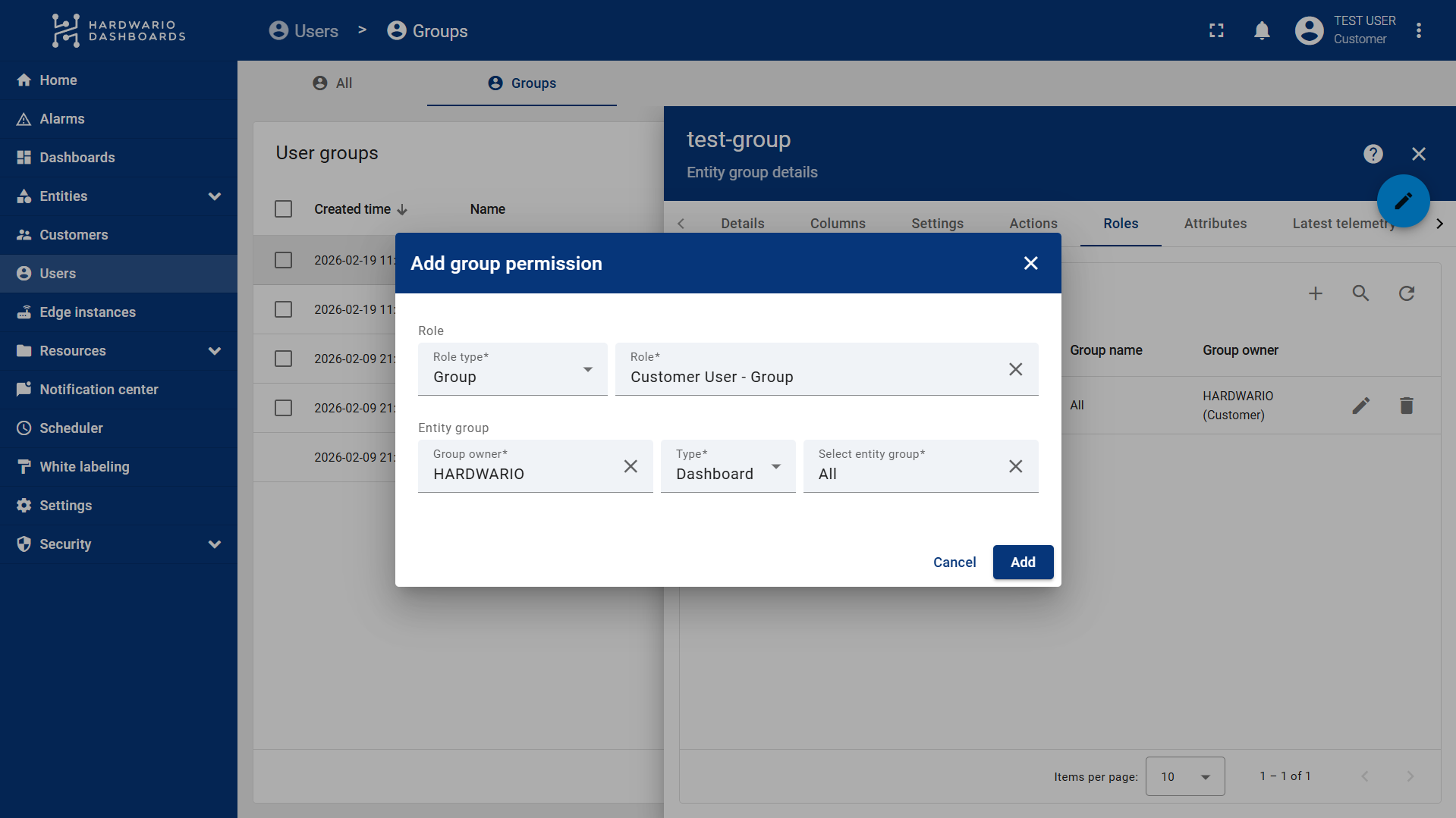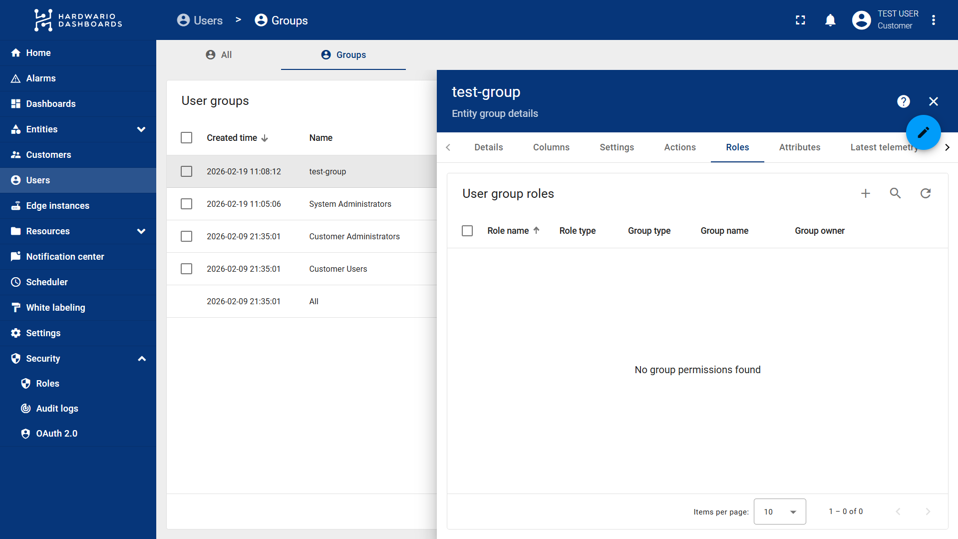 Follow these steps to configure user groups and manage their roles in ThingsBoard: