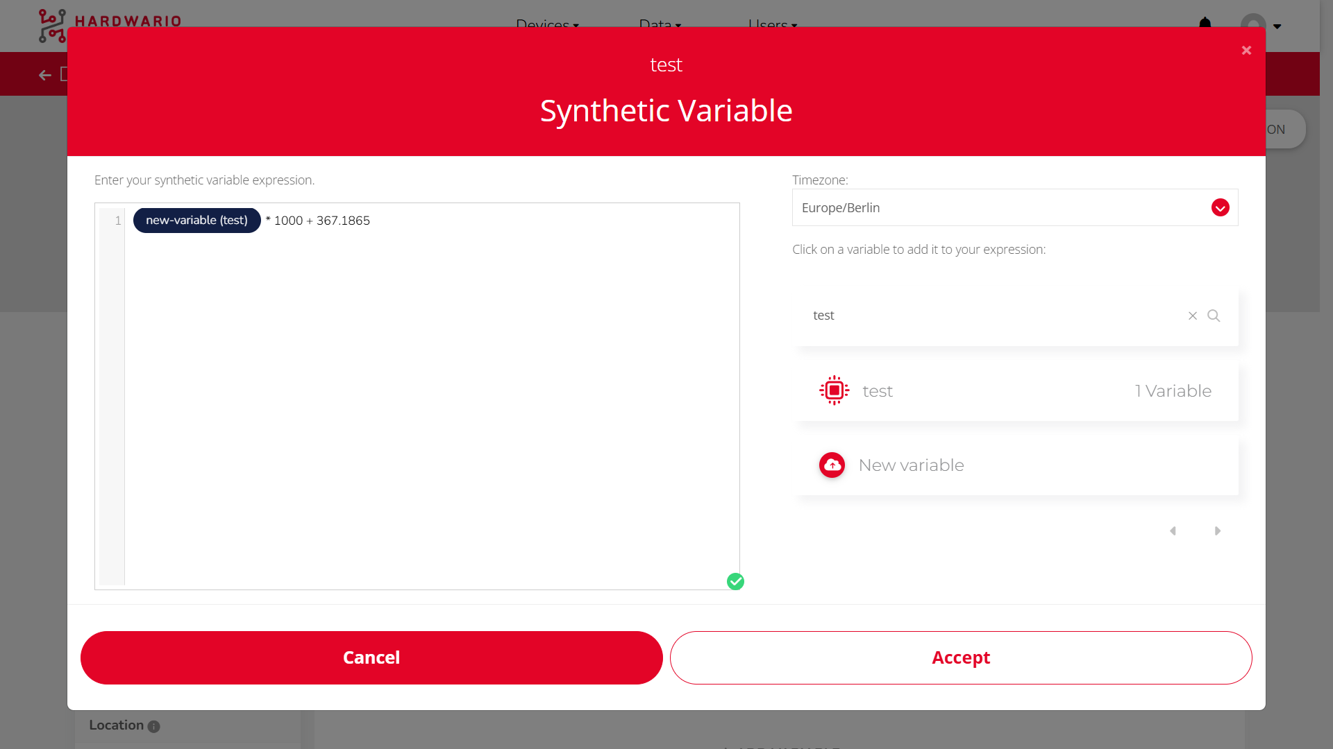 If you need to create a new variable derived from your existing data (for example, an average, a conversion, or a mathematical combination), you can do this directly in Ubidots by creating a Synthetic Variable.