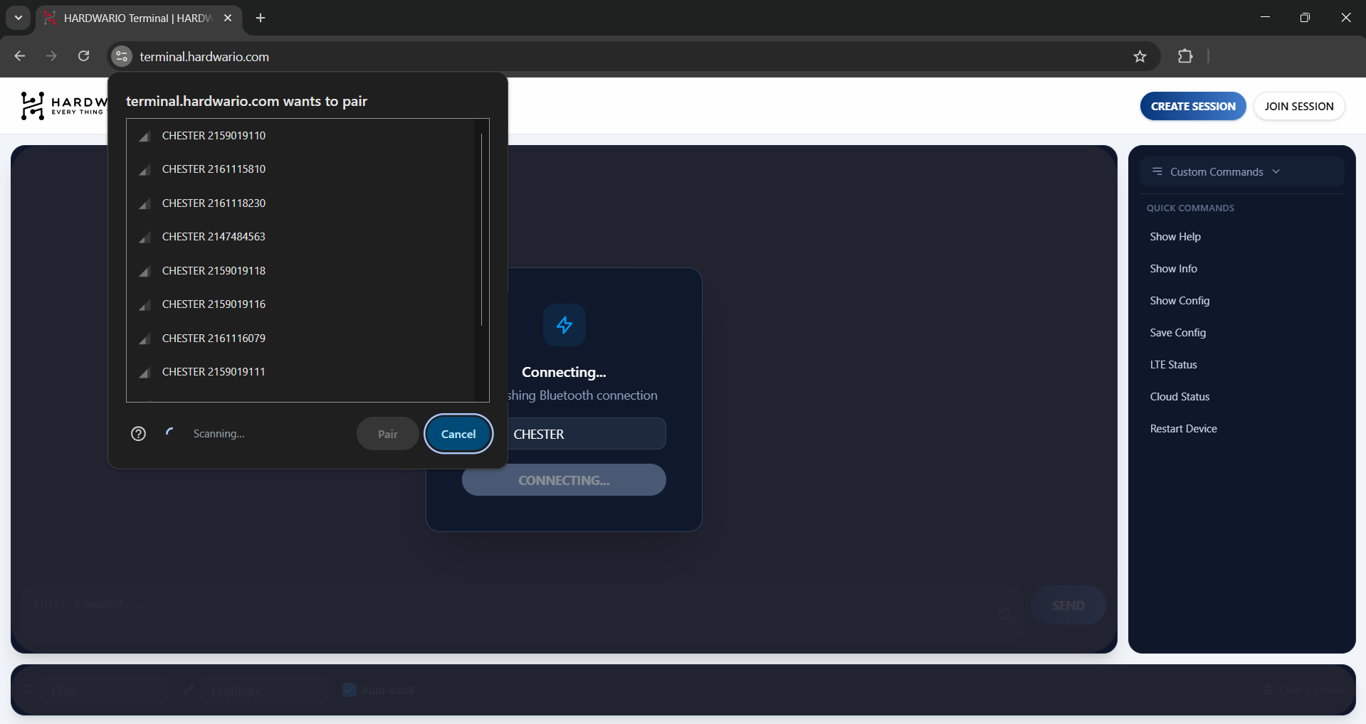 CHESTERprefix is automatically filtered, so you will only see compatible CHESTER devices. - Step 4: Select your specific device from the list and click Pair.