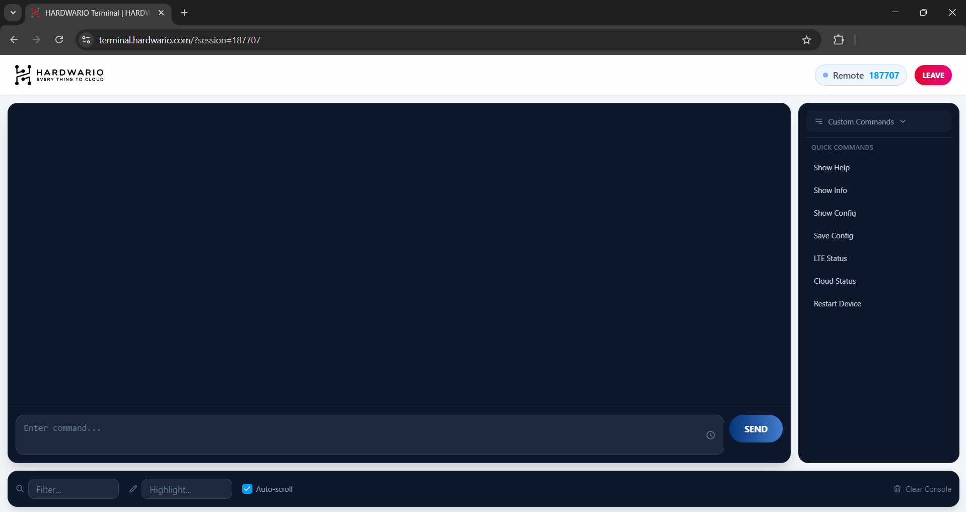 The HARDWARIO Terminal is a Google Chrome-based terminal tool that allows users to interact directly with HARDWARIO devices and modules through their browser, all without the need to install additional software.